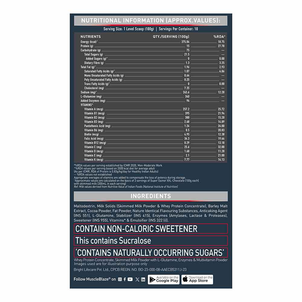 MuscleBlaze Super Gainer XXL Weight Gainer, Chocolate
