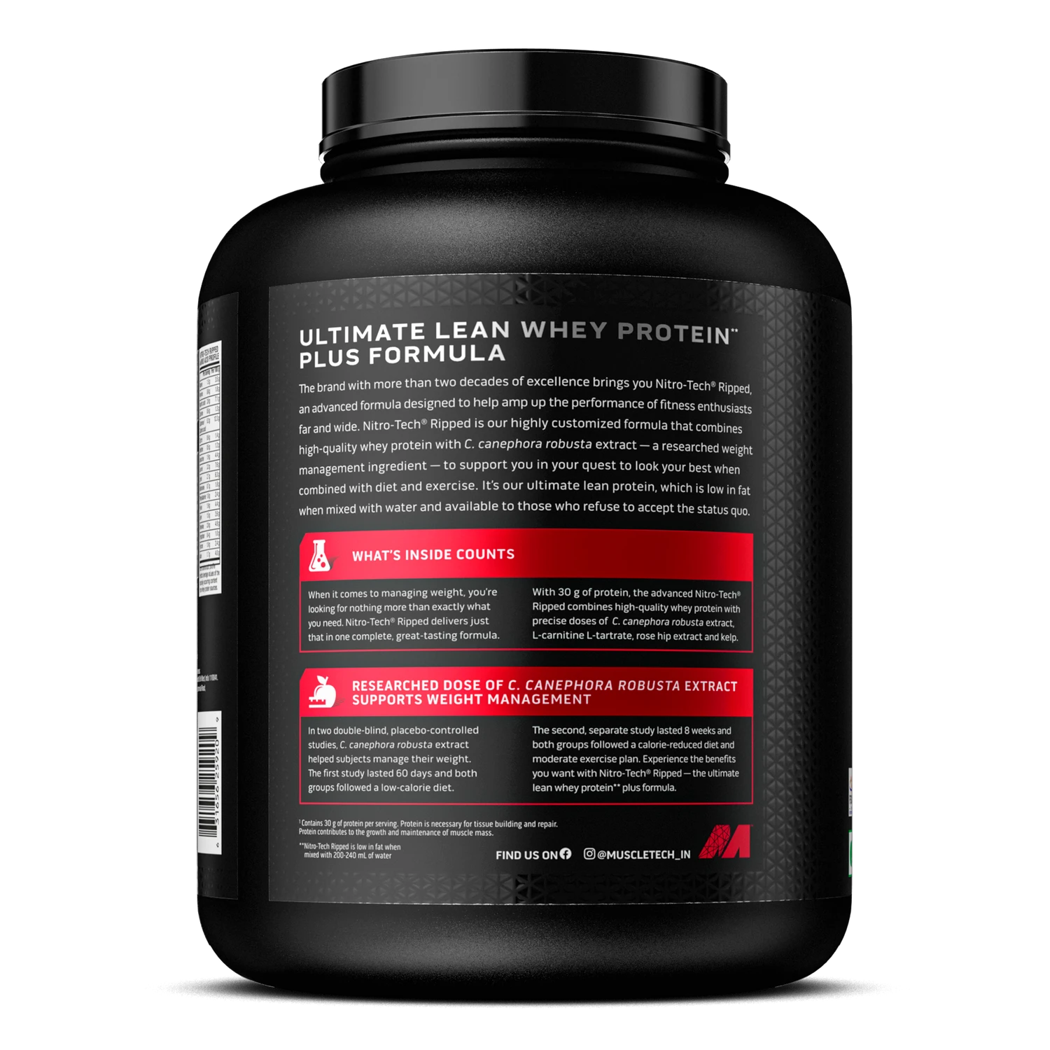 The brand with more than two decades of excellence brings you Nitro-TechTM Ripped, an advanced formula designed to help amp up the performance of fitness enthusiasts far and wide. Nitro-TechTM Ripped is our highly customized formula that combines high-quality whey protein with C. canephora robusta extract – a researched weight management ingredient – to support you in your quest to look your best when combined with diet and exercise. It’s our ultimate lean protein which is in low in fat when mixed with water and available to those who refuse to accept the status quo.