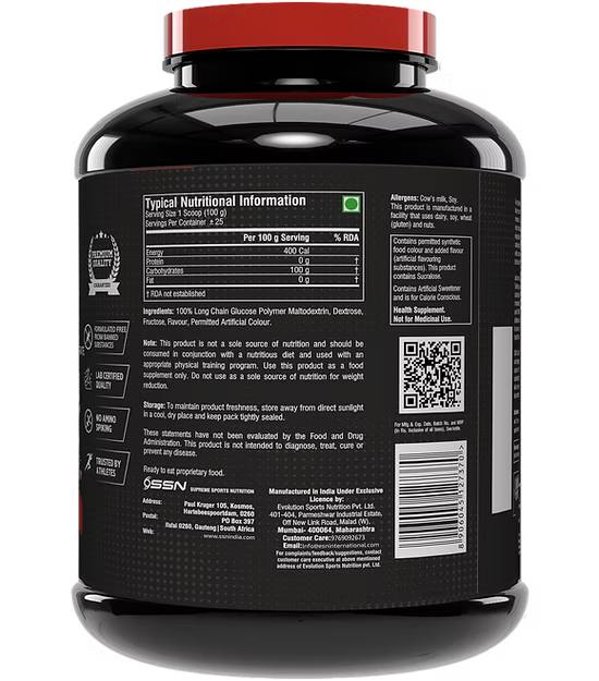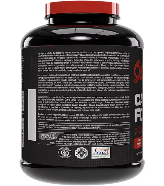 SSN’s Carbo Force speeds up recovery with natural maltodextrin—free from refined sugars, fat, and cholesterol. It restores energy, supports muscle repair, and enhances performance with a clean, natural taste.